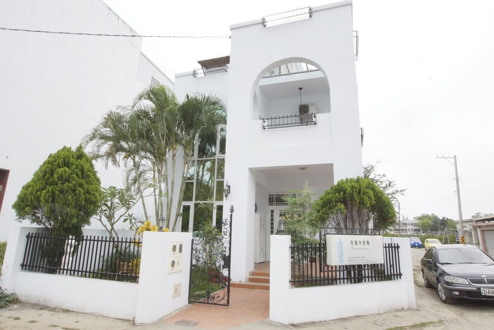 鮮艷又可愛的建築外觀,搭配綠油油的庭院及藍藍的天空,讓人心情愉悅。